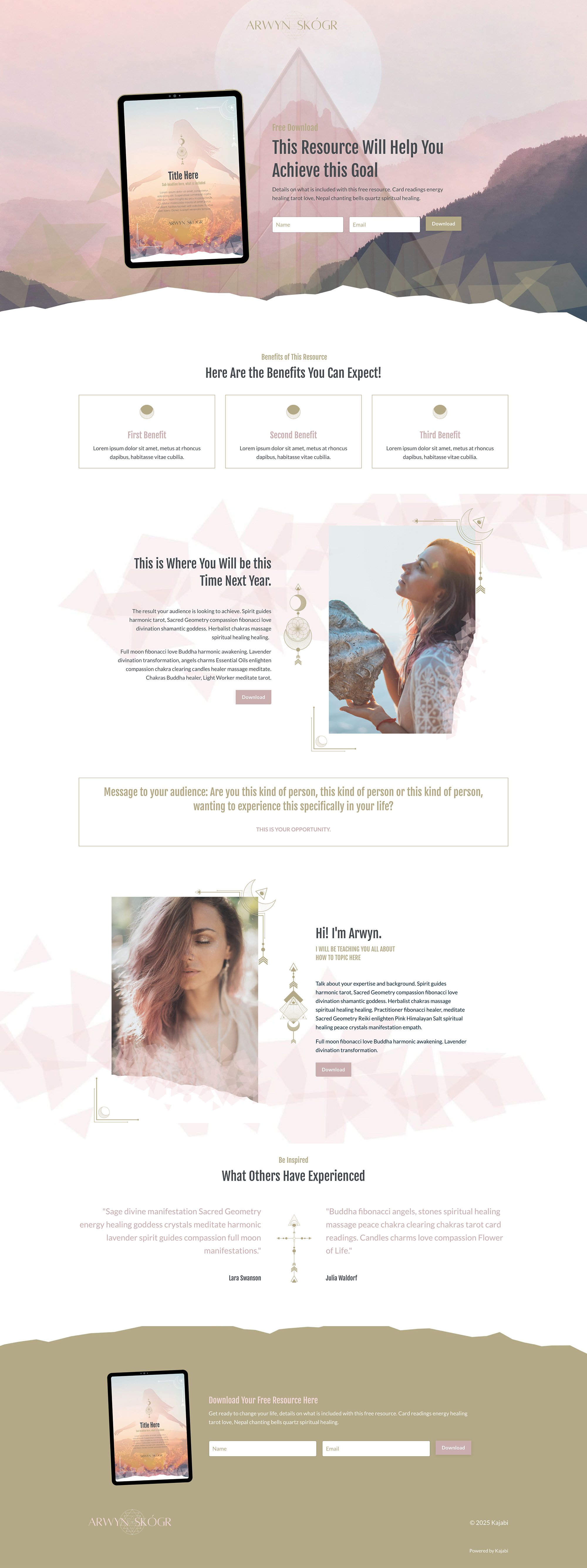 This premium Kajabi template was designed with soul and strategy, so you don’t have to choose between dreamy design and smart conversion. Scroll through the pages below and see how effortless it can be to bring your brand to life.