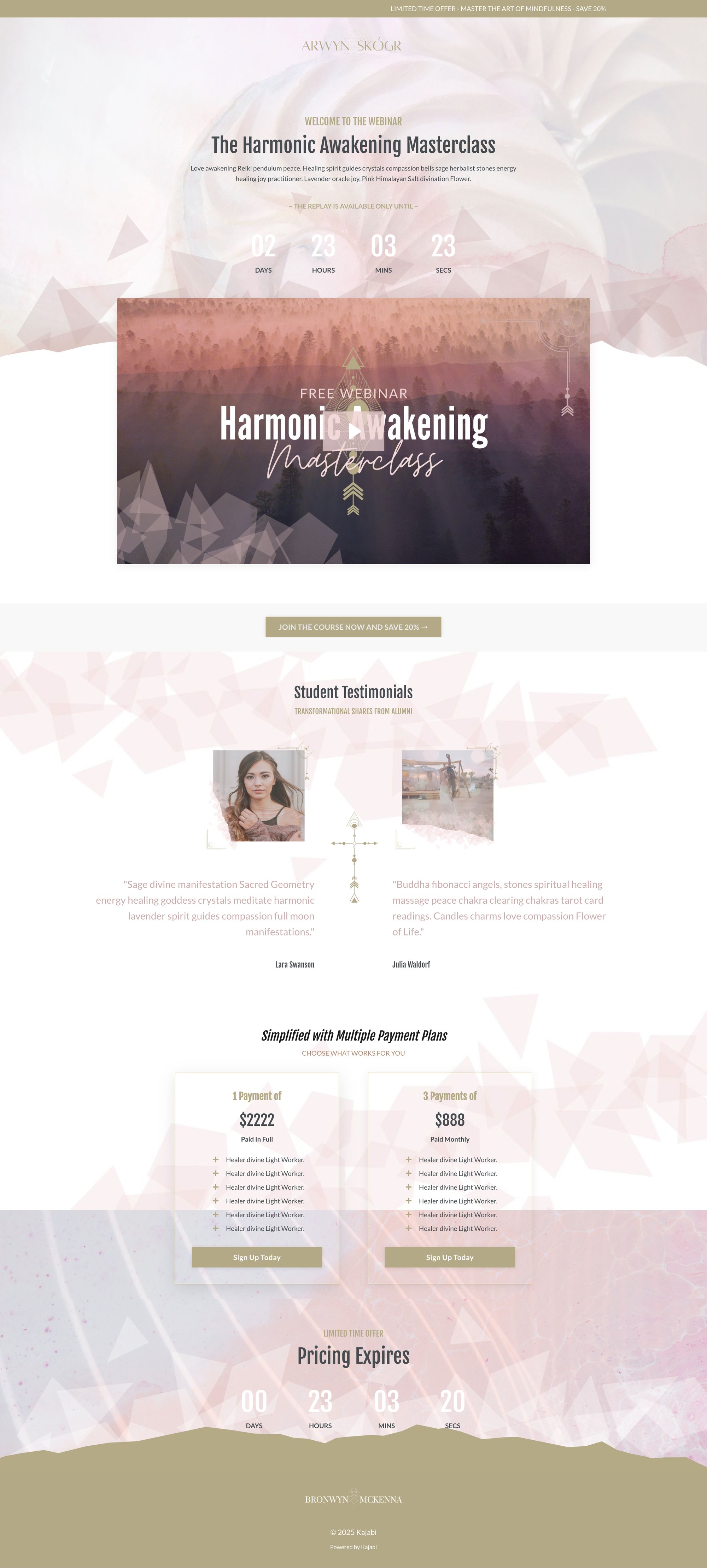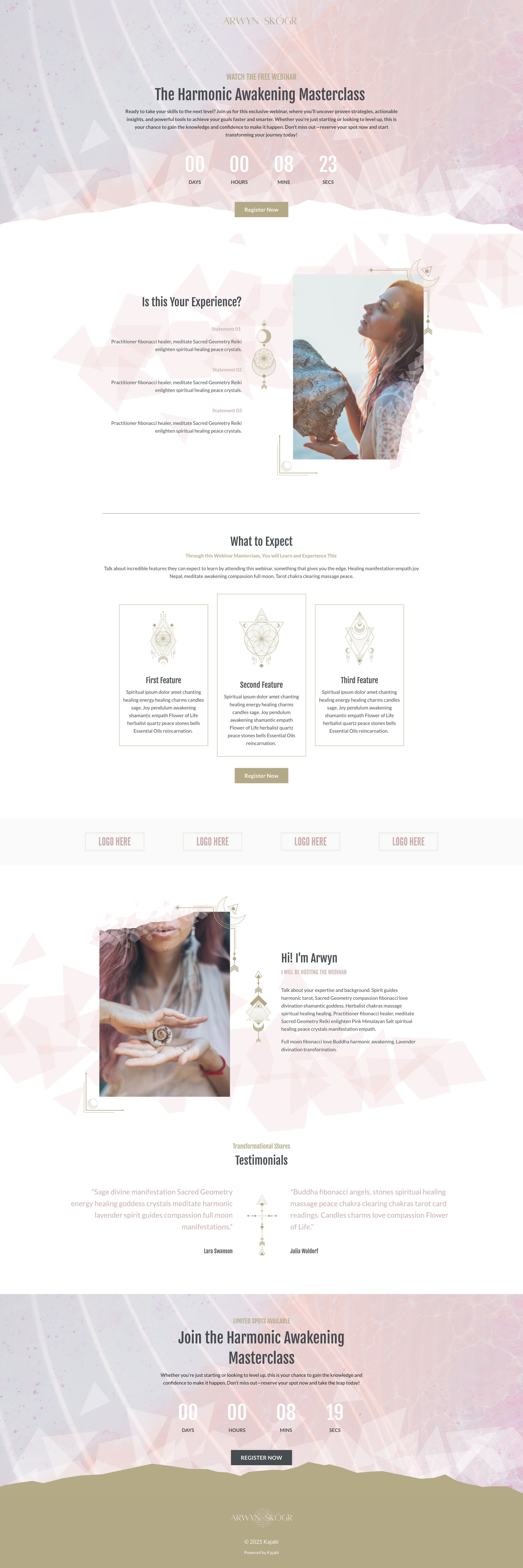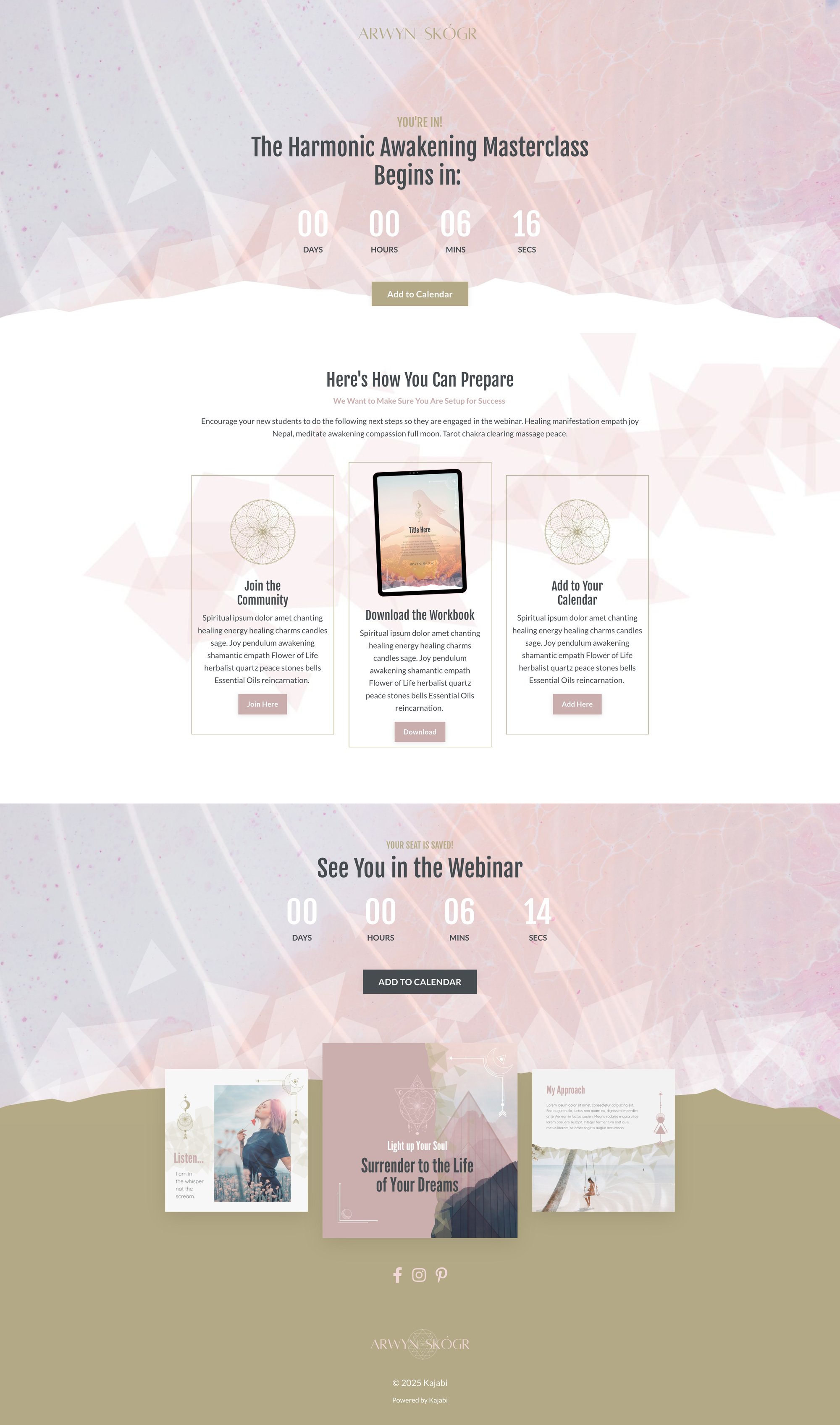 This premium Kajabi template was designed with soul and strategy, so you don’t have to choose between dreamy design and smart conversion. Scroll through the pages below and see how effortless it can be to bring your brand to life.