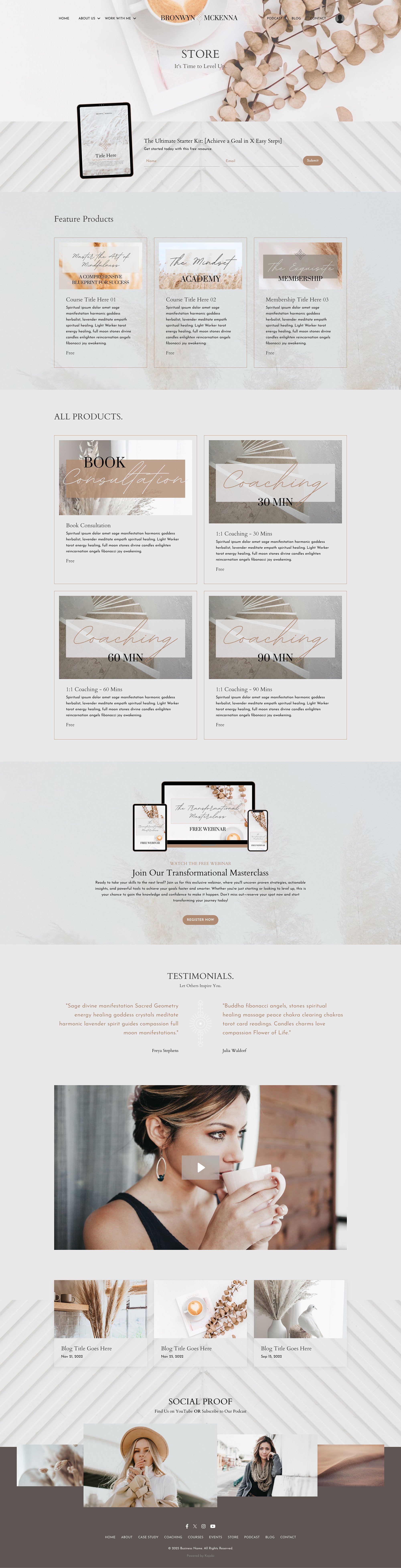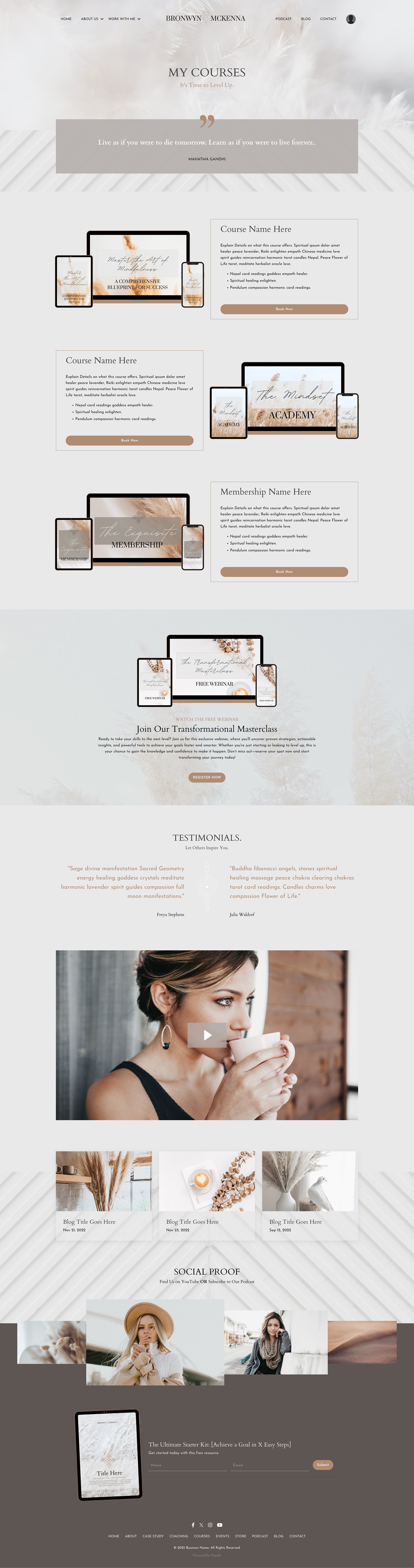 This premium Kajabi template was designed with soul and strategy, so you don’t have to choose between dreamy design and smart conversion. Watch the video, and scroll through the pages below and see how effortless it can be to bring your brand to life.