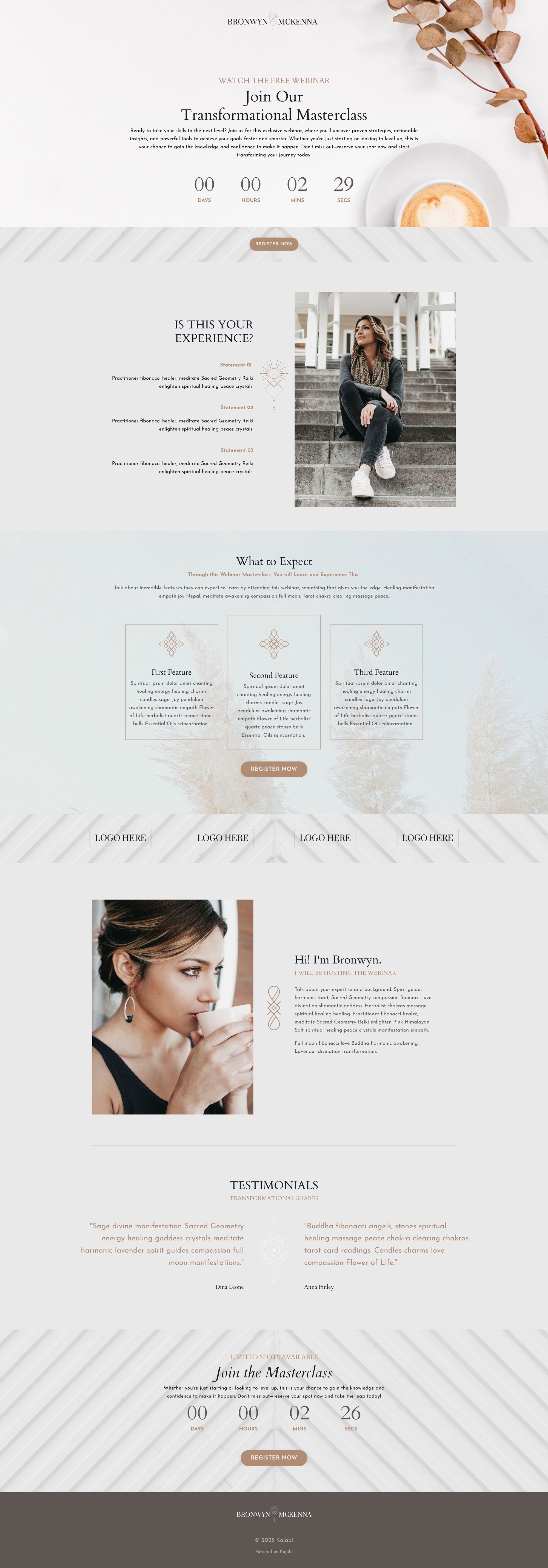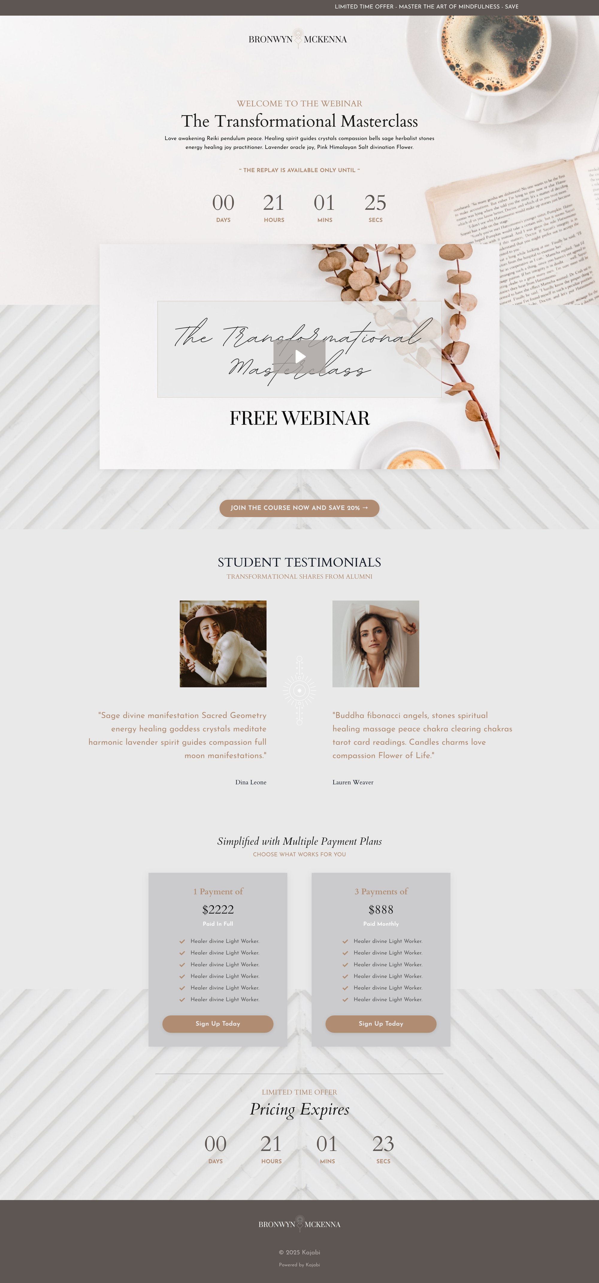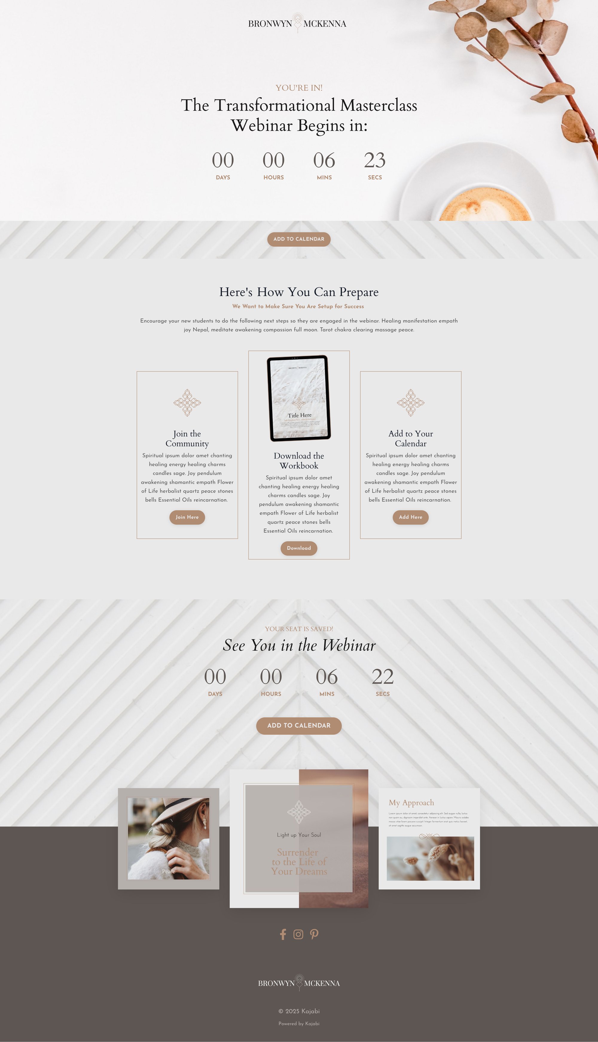 These premium Kajabi templates were designed with soul and strategy, so you don’t have to choose between dreamy design and smart conversion. Scroll through the pages below and see how effortless it can be to bring your brand to life.