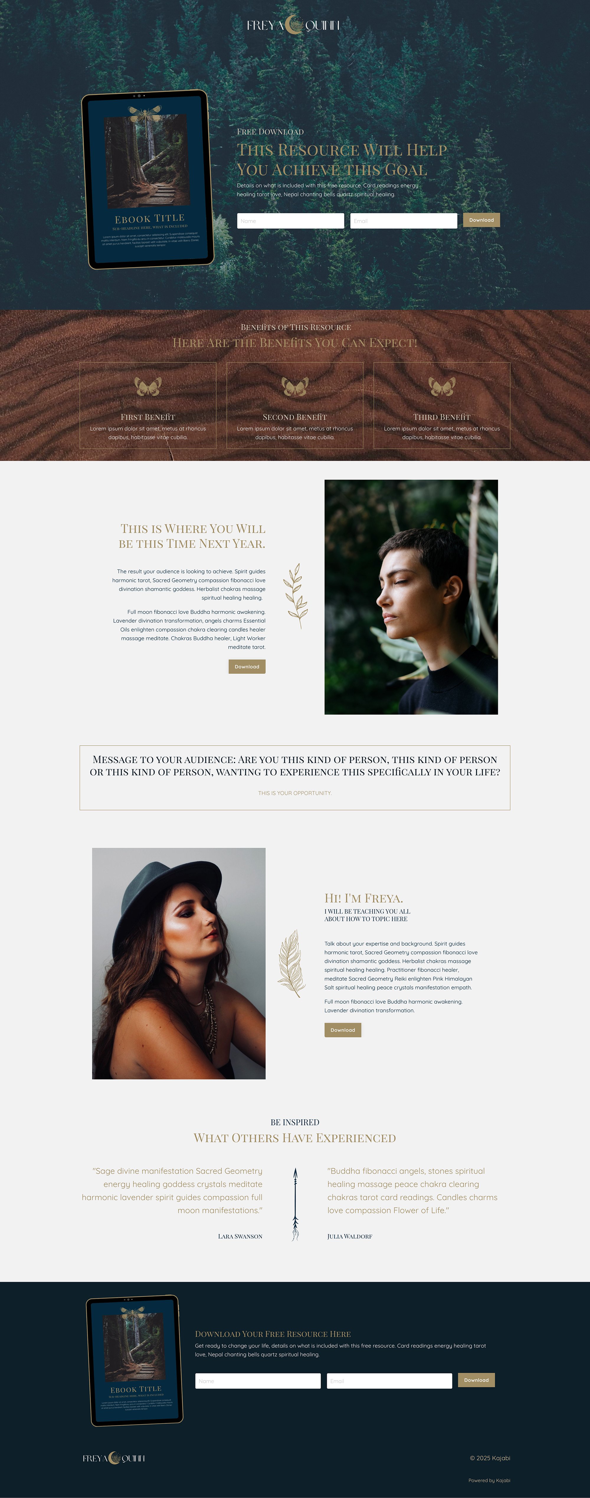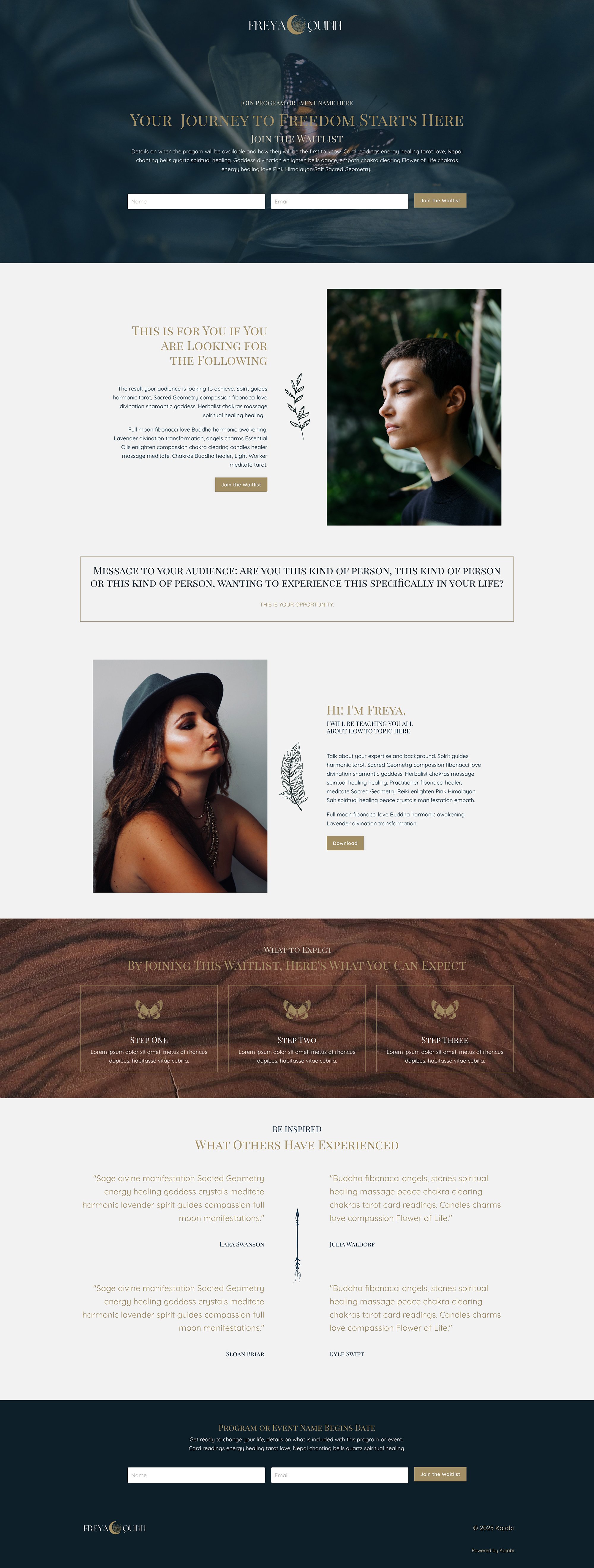 This premium Kajabi template was designed with soul and strategy, so you don’t have to choose between dreamy design and smart conversion. Scroll through the pages below and see how effortless it can be to bring your brand to life.