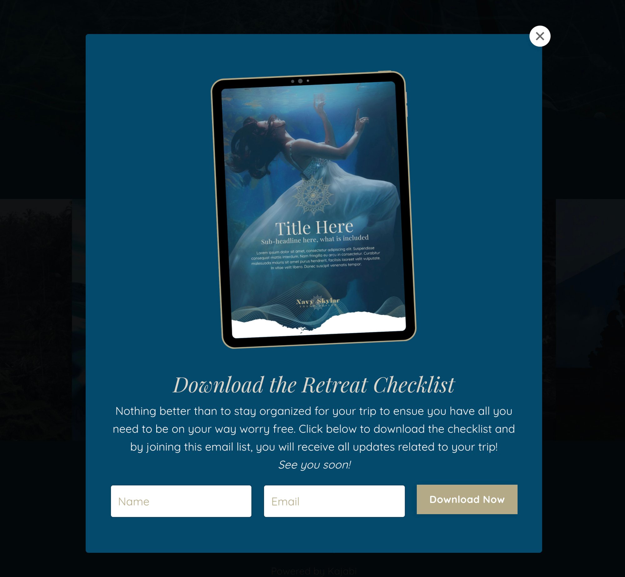 Welcome to the Navy WATER PORTAL Collection — where beauty meets purpose. This premium Kajabi template was designed with soul and strategy, so you don’t have to choose between dreamy design and smart conversion. Scroll through the pages below and see how effortless it can be to bring your brand to life.