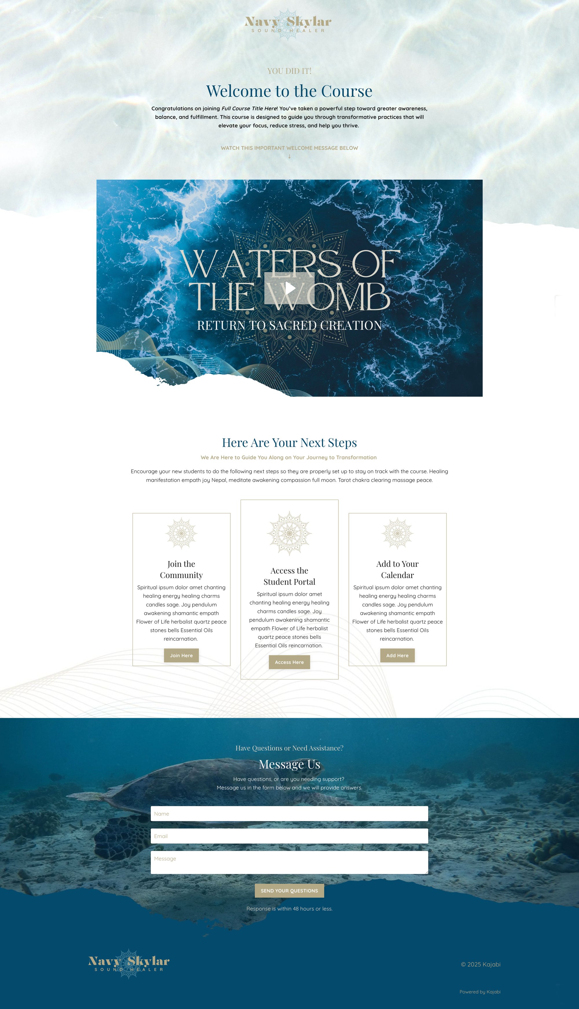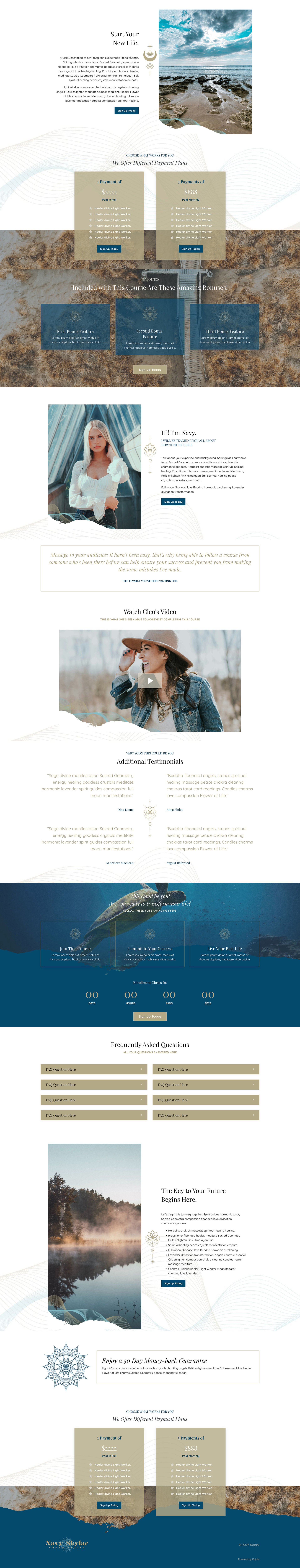 This premium Kajabi template was designed with soul and strategy, so you don’t have to choose between dreamy design and smart conversion. Scroll through the pages below and see how effortless it can be to bring your brand to life.
