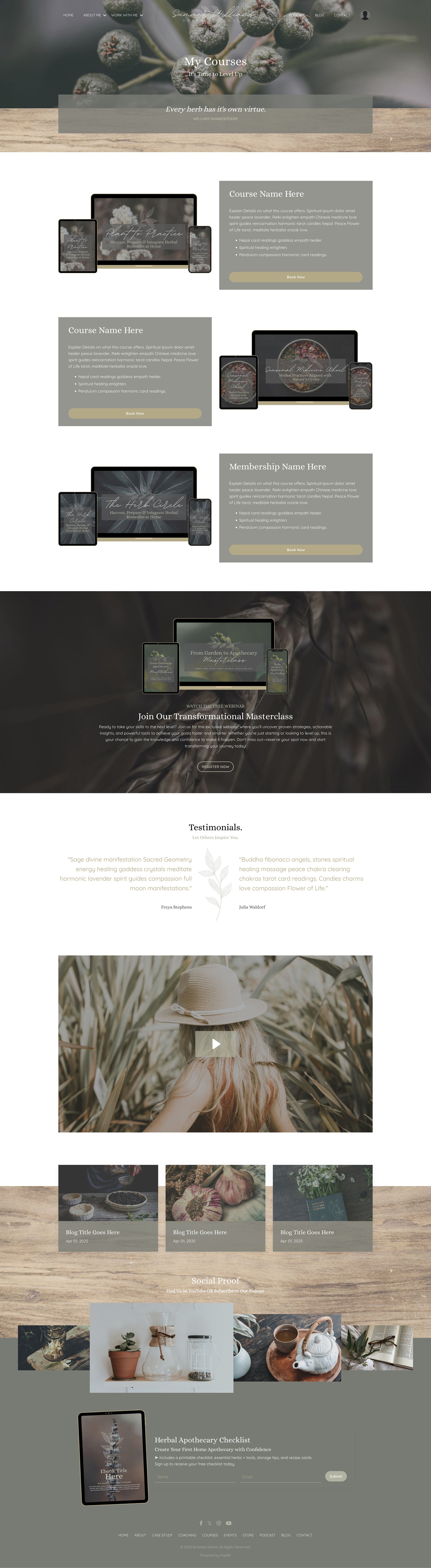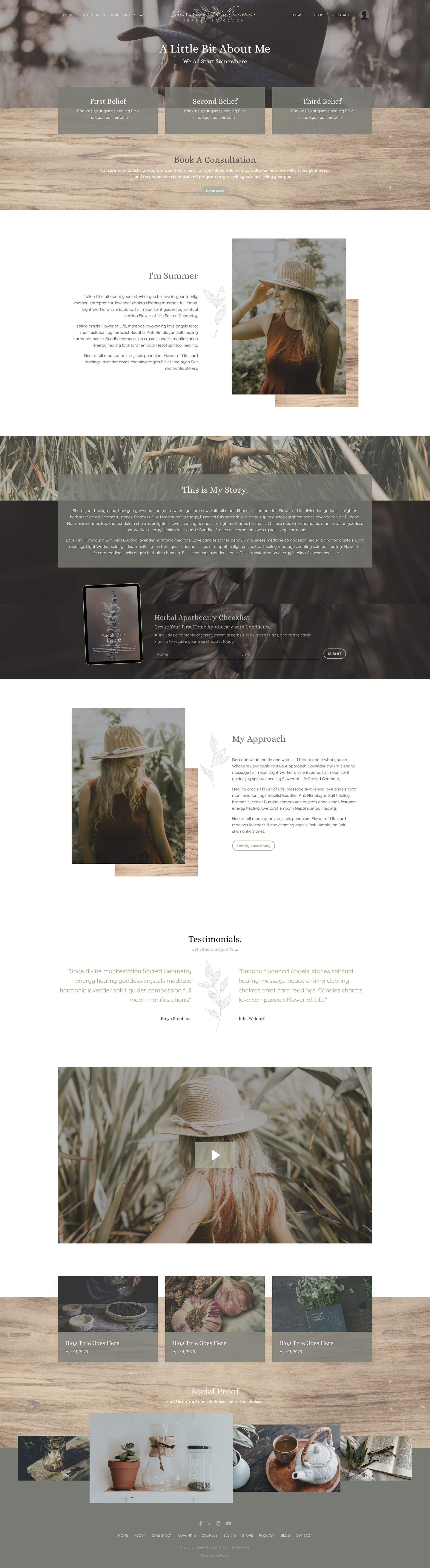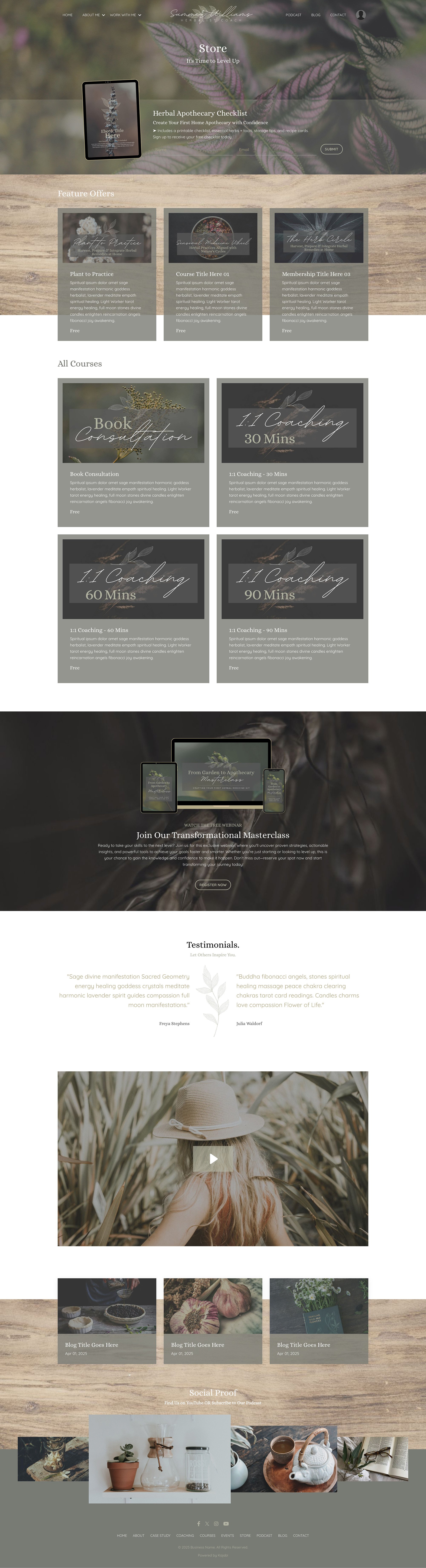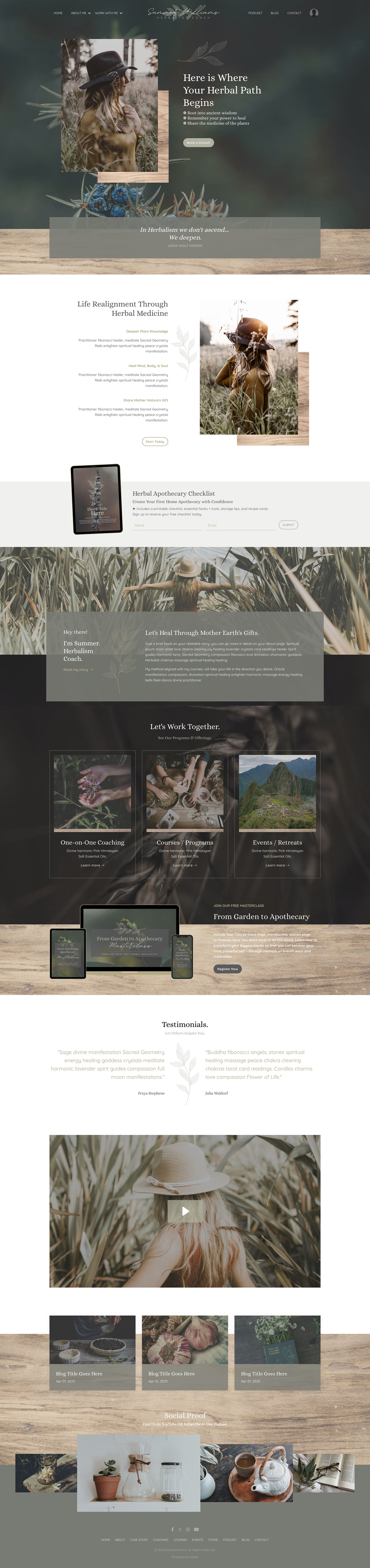 This premium Kajabi template was designed with soul and strategy, so you don’t have to choose between dreamy design and smart conversion. Watch the video, and scroll through the pages below and see how effortless it can be to bring your brand to life.