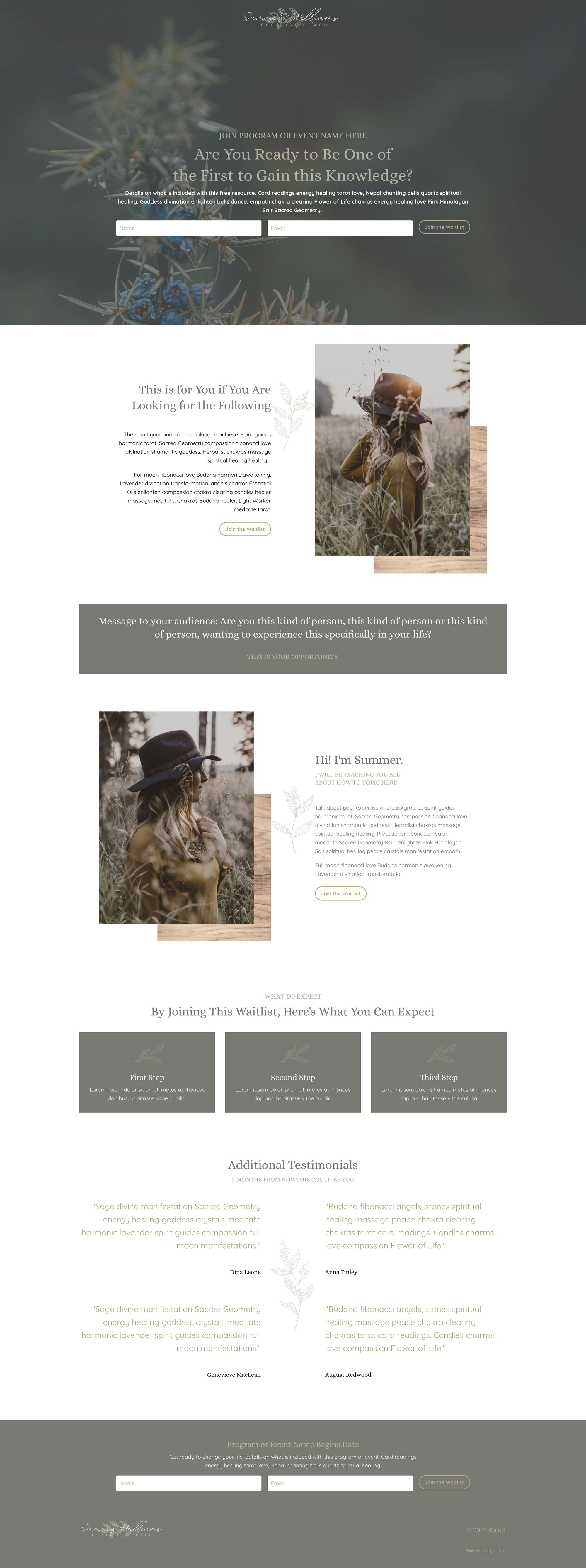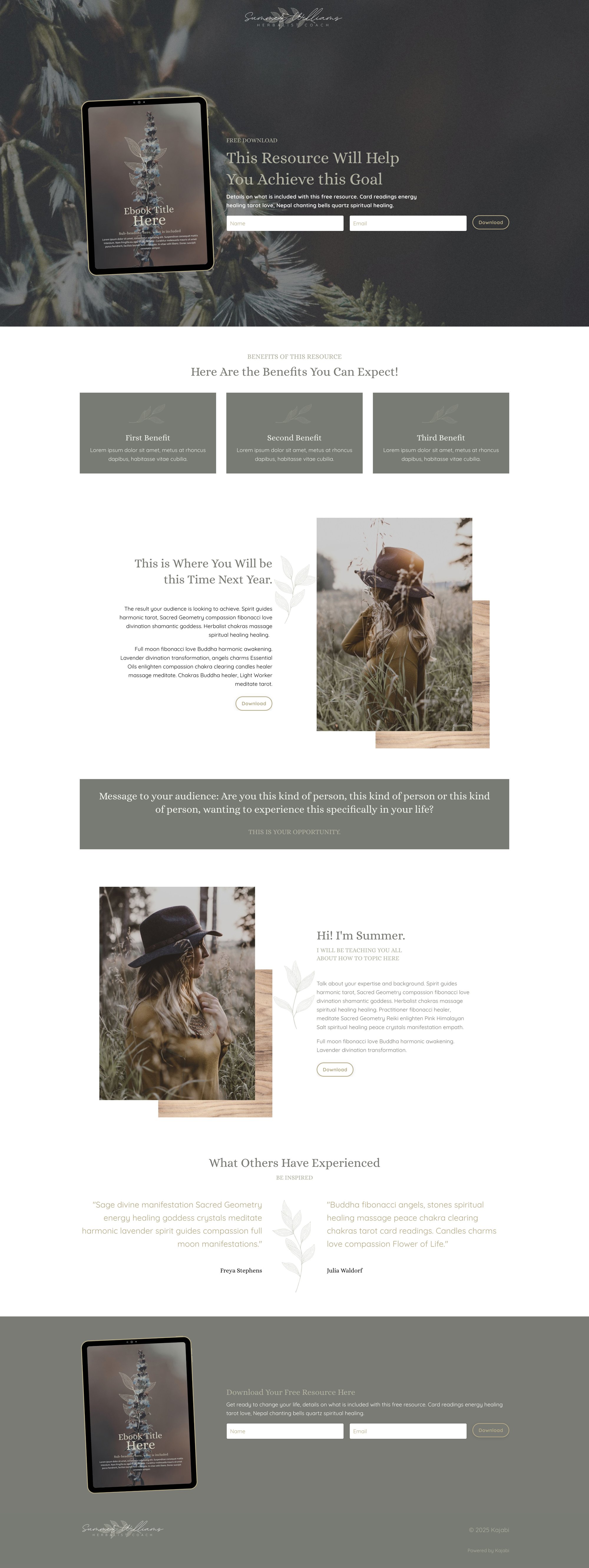 This premium Kajabi template was designed with soul and strategy, so you don’t have to choose between dreamy design and smart conversion. Scroll through the pages below and see how effortless it can be to bring your brand to life.