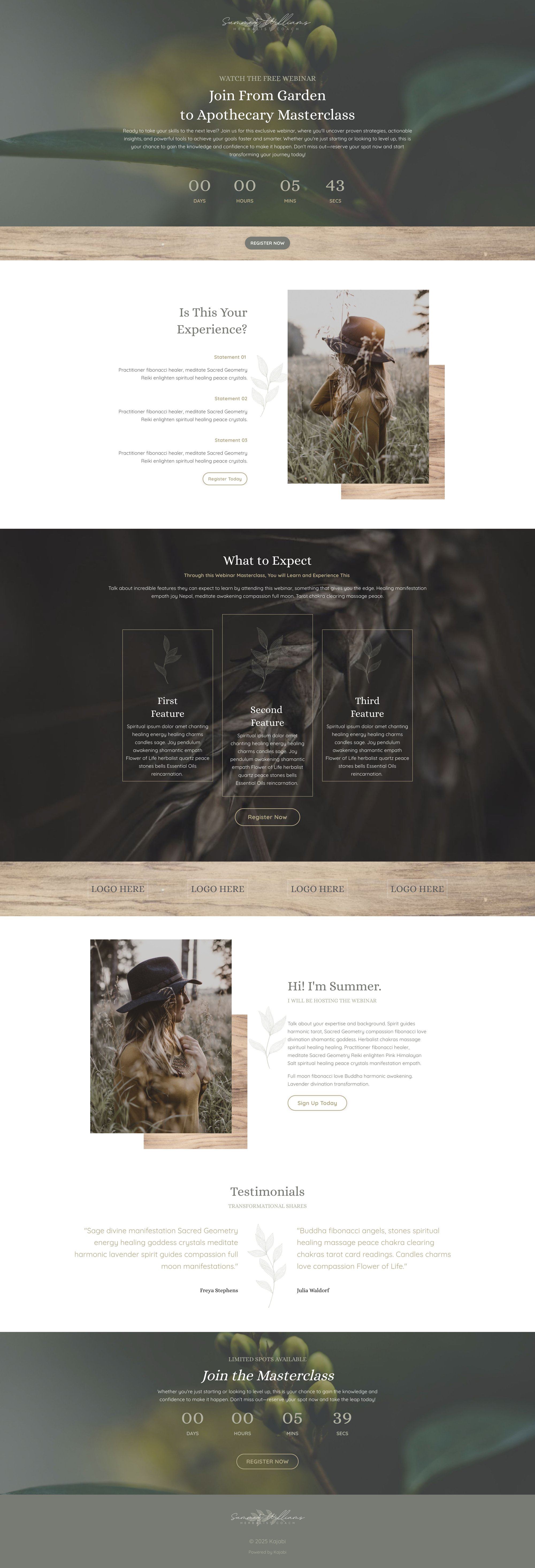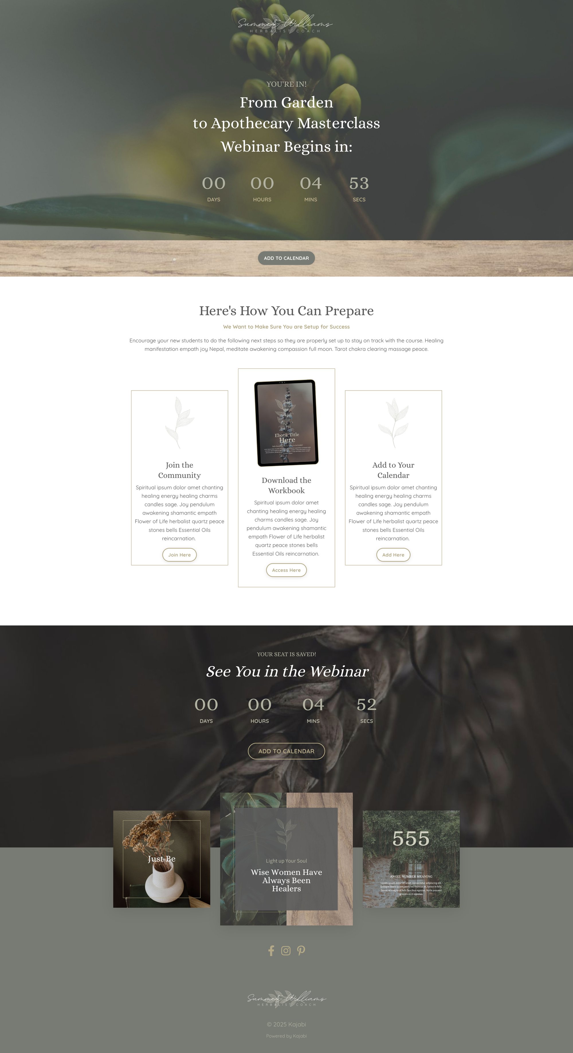 This premium Kajabi template was designed with soul and strategy, so you don’t have to choose between dreamy design and smart conversion. Scroll through the pages below and see how effortless it can be to bring your brand to life.